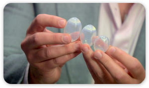 Different testicle prosthesis types. In these prostheses, the dimensions are adjusted according to the dimensions of the other testicle.